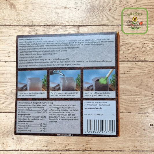 Nachhaltig gĂ€rtnern leicht gemacht â FLORTUS Kokos Anzuchterde (60 g, ergibt 1 l)