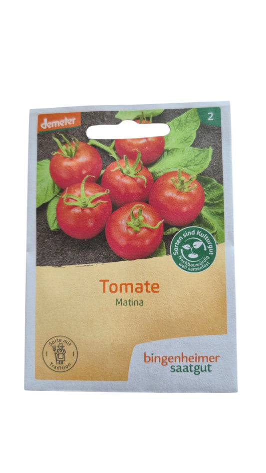 - Tomatensamen 'Matina': Frühe, robuste Sorte, die auch in kühlen Sommern zuverlässig reife Früchte liefert.