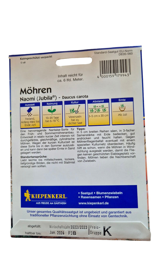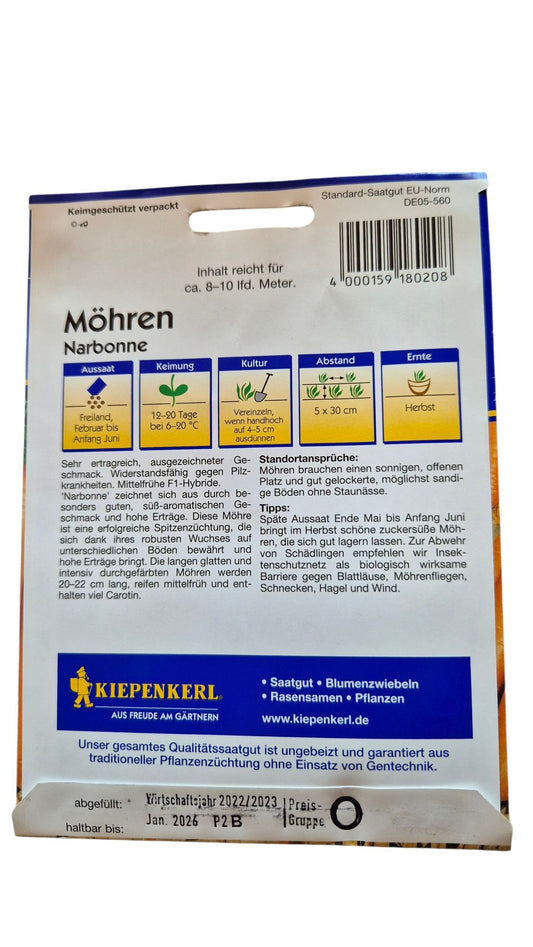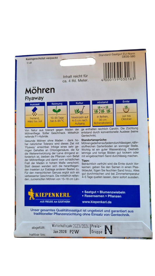 - Tipp: Mische einige Radieschen Samen unter die Möhrensaat – sie keimen schneller und markieren die Reihen