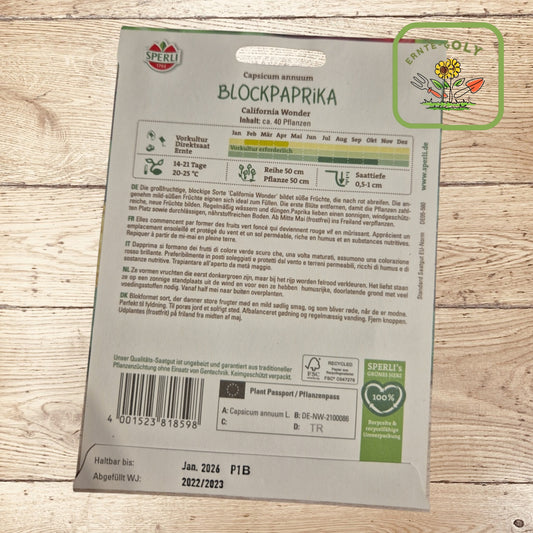 Bei ROJULY finden Sie sorgfältig ausgewählte, gleichfeste Sorten wie die beliebte California Wonder Blockpaprika, die sich ideal für den nachhaltigen Anbau eignen. Mit etwas Geduld bei der Anzucht, dem richtigen Standort und regelmäßiger Pflege wirst du mit einer reichen Ernte belohnt.